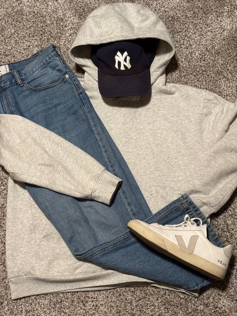 Sweater: Lululemon Steady State Hoodie | Jeans: BDG Straight Leg | Shoes: Veja Campo