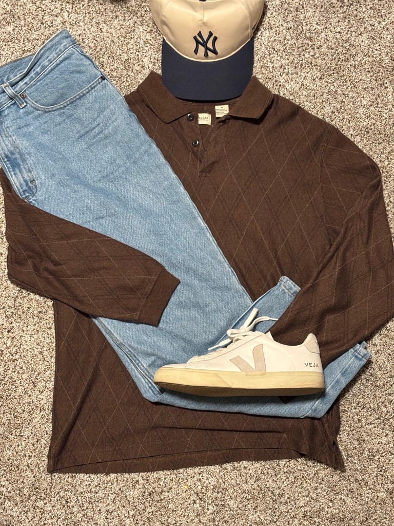 Polo: Thrifted Haggar | Jeans: L.L. Bean | Shoes: Veja Campo